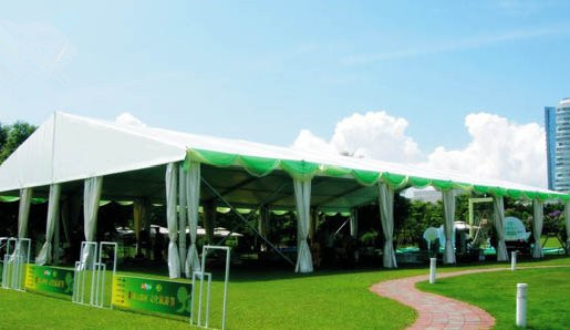 Event tent: 3-12m clear–span width, the length is unlimited extended by each 3/5m.