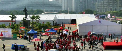 Huge Tent: 30-50m clear–span width, the length is unlimited extended by each 5m.
